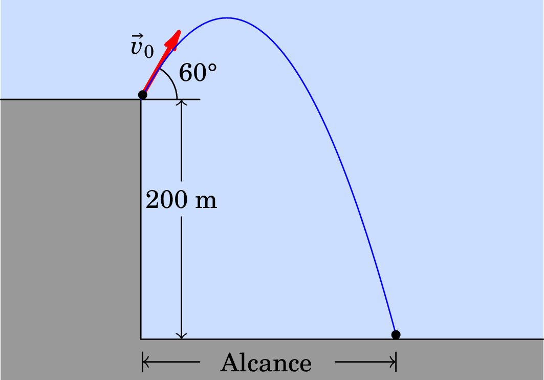 de 30° e atinge o solo a 4 km do ponto de disparo. Calcule: