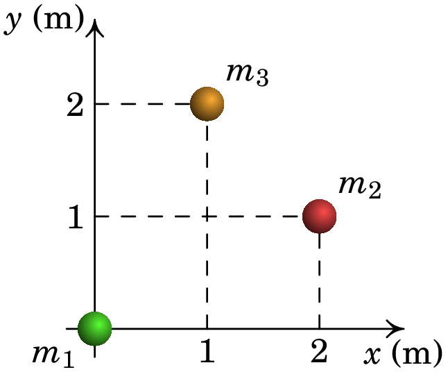 3. A figura seguinte mostra um sistema de três partículas, de massas kg, kg e kg.