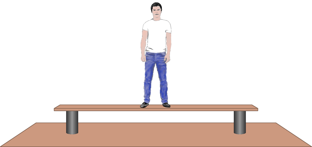 em dois suportes, a tábua deforma-se, descendo 2.5 cm na posição