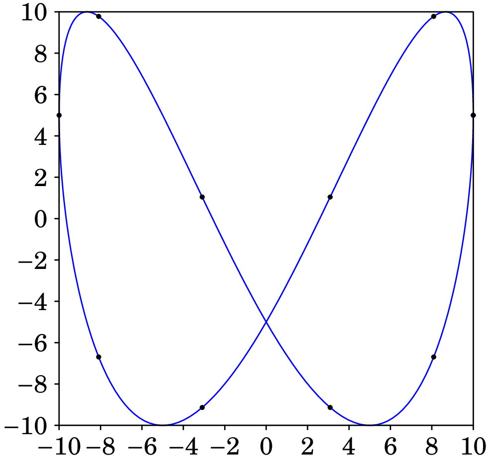 Com essas coordenadas e , e tendo em conta que os valores mínimos de e devem ser e os valores máximos 10, obtém-se o seguinte gráfico: