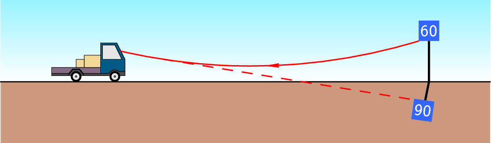 As miragens, observadas nas estradas nos dias quentes, são devidas a que o ar quente das camadas mais baixas, próximas da estrada, têm menor densidade e menor índice de refração do que as camadas mais altas. A luz de um objeto por cima da estrada curva-se, devido a essa variação do índice de refração, e chega aos olhos dum condutor como se tivesse partido de um objeto por debaixo da estrada (figura 1.8). A curvatura dos raios luminosos fazem parecer como se houvesse um espelho sobre a estrada, que reflete os raios luminosos do objeto, produzindo uma imagem virtual, tal como num espelho.