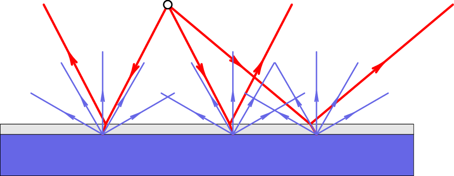 A figura 1.6 mostra uma superfície áspera coberta por uma película transparente e lisa. Uma parte de cada raio que atinge a superfície lisa da película é refletido, e a parte restante penetra a película transparente sendo depois refletido na superfície áspera por baixo da película transparente.