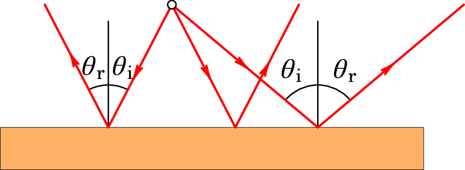 Quando a superfície do objeto que reflete a luz é completamente lisa, a reflexão designa-se de especular. O ângulo (ângulo de incidência) que cada raio de luz faz com a perpendicular à superfície, no ponto onde é refletido, é igual ao ângulo (ângulo de reflexão) que o raio faz com a mesma perpendicular após ser refletido (ver figura 1.4):