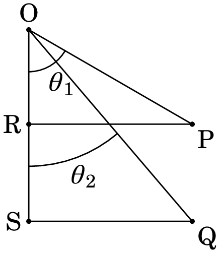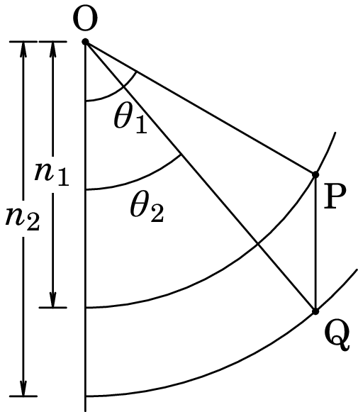 Resolução. A figura seguinte mostra os dois triângulos retângulos com hipotenusas OP e OQ, iguais aos índices de refração e dos dois meios, e um dos catetos na direção da normal ao meio, OS.