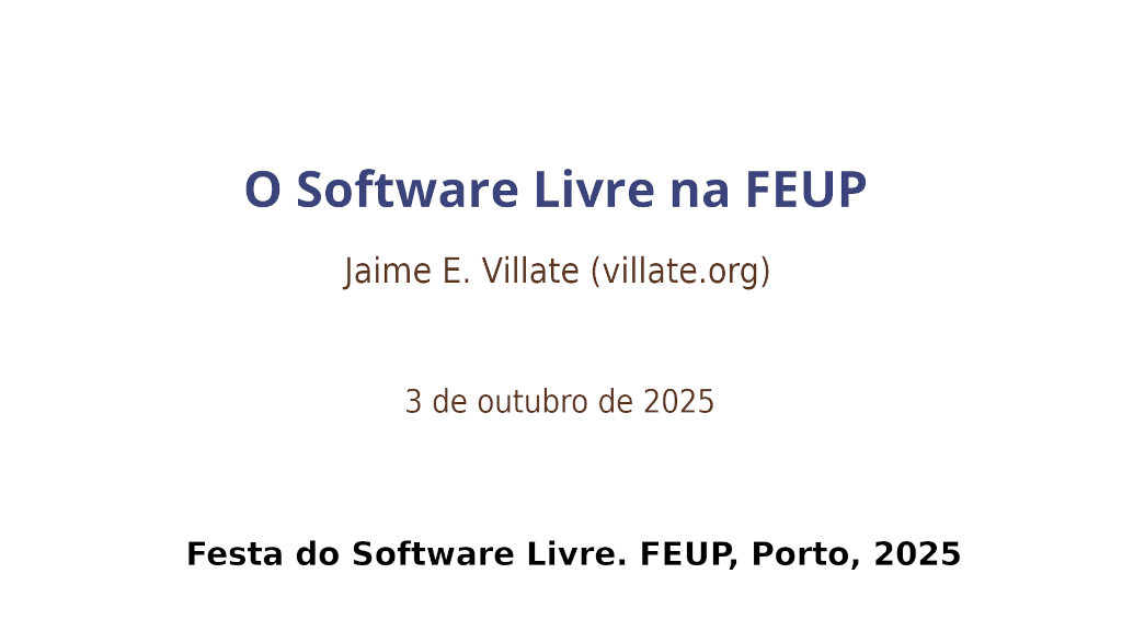 Palestra convidada na abertura da Festa do Software Livre 2025, na Faculdade de Engenharia da Universidade do Porto, 3 de outubro de 2025.